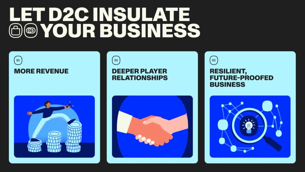 Build stronger player relationships: App stores often limit visibility into who your players are and what they value. A D2C channel helps publishers build a direct relationship with first-party insights that make personalization, segmentation, and retention far more powerful.